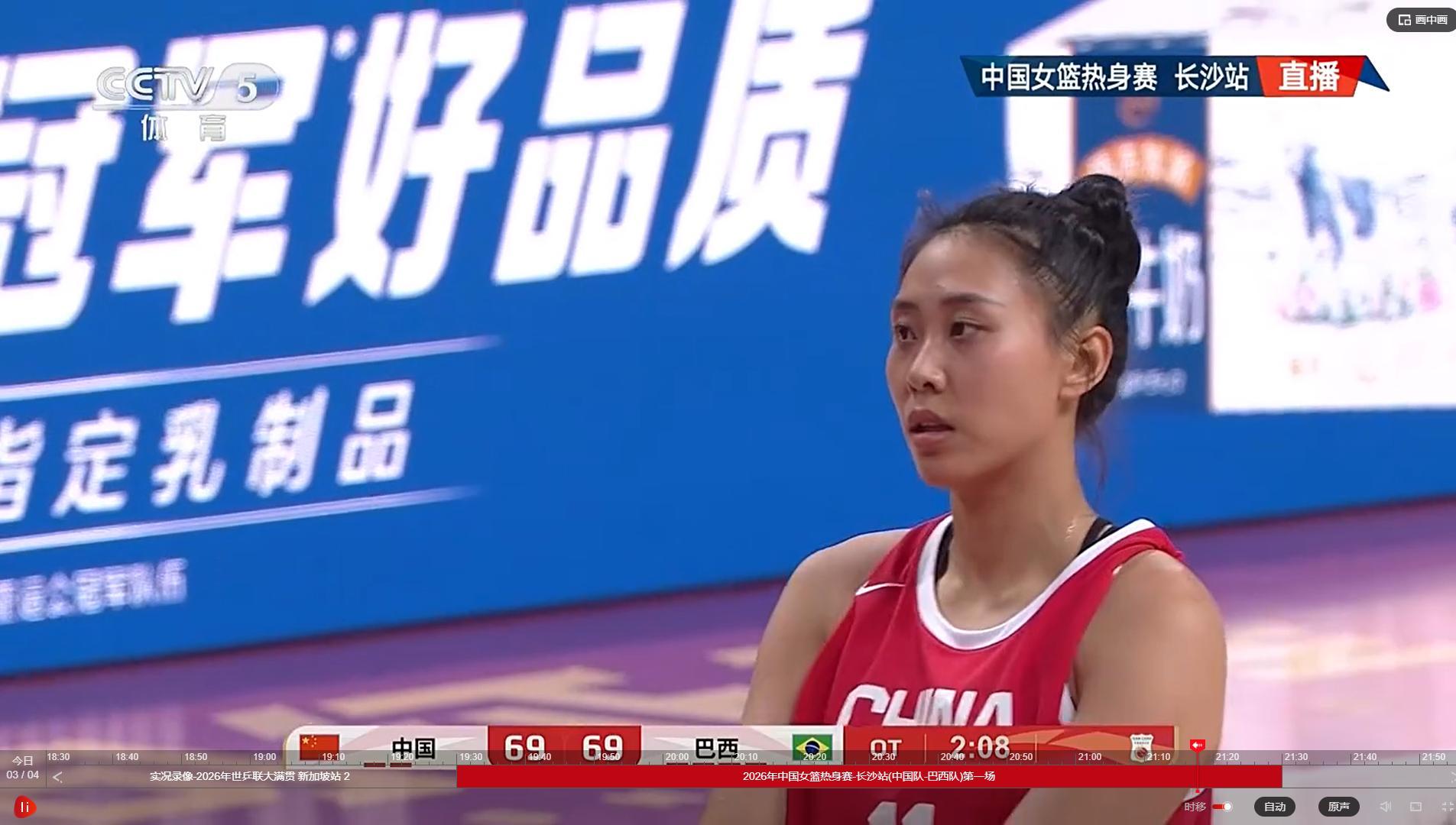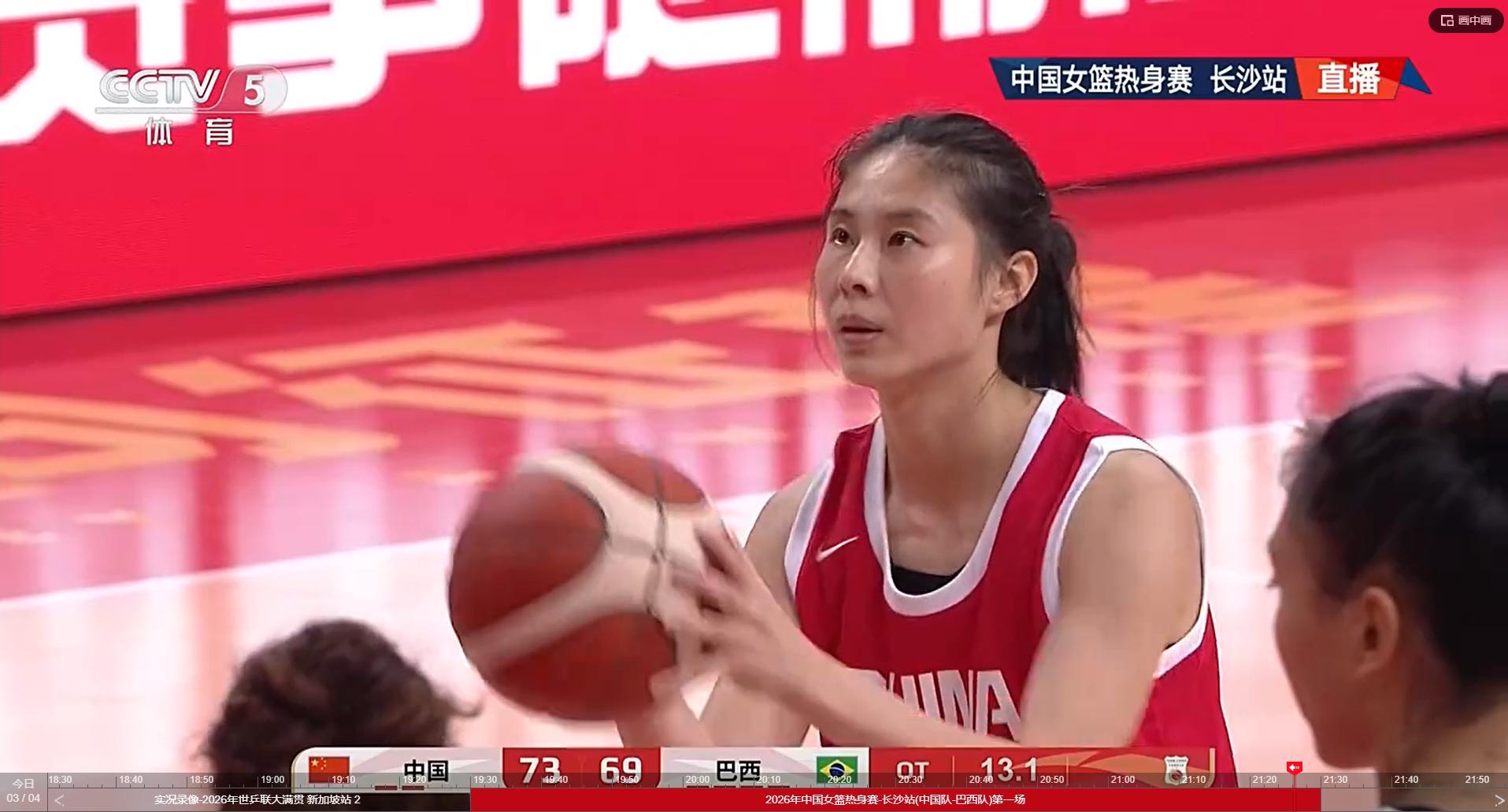 为准备世界杯资格赛,中国女篮邀请巴西队来华进行三场热身赛,今晚在长沙进行了第一场比赛,中国队通过加时赛最终74比69击败了巴西队,取得热身赛开门红。
